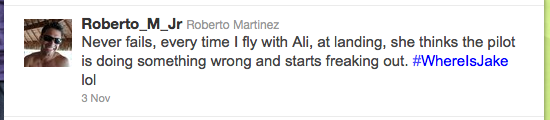 Back to the Break-up: After some Twitter stalking, I didn’t find any hints of their break-up looming. Roberto hadn’t tweeted about Ali and their relationship since Nov 3rd when he posted the following tweet. No indication of their relationship being on the rocks, though.