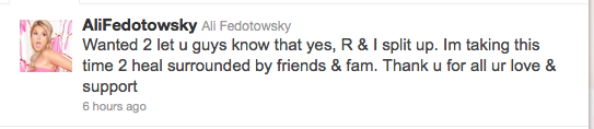 We had questions. We wanted answers. Looks like we might get a few of them this Friday. Ali Fedotowsky speaks to People Magazine about her break-up with Roberto Martinez. Finally maybe we’ll have a few answers to our questions of why this relationship didn’t make it. While People is making us wait until Friday for the story to hit the stands, they did give us a few teaser quotes.