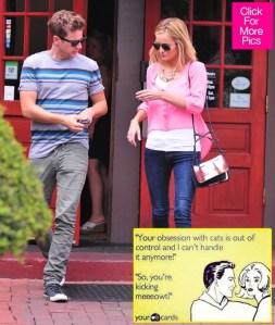 The real cause of the break-up: I’m gonna go with the other bloggers on this one and choose to attribute their break-up to Emily’s obsession with cats. Emily tweeted her daughter was going as a cat for Halloween and Jef tweeted shortly thereafter one of those awesome Somecards that read: “Your obsession with cats is out of control and I can’t handle it anymore… So you’re kicking meeeowt?” While Emily is deleting any online remnant of her relationship with Jef, Jef is fully embracing social media during their post break-up news.