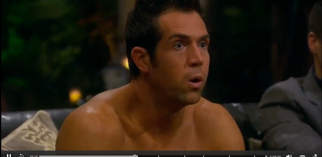 Best moment of the night: Hands down. Shirtless man’s expression after seeing the man covered in tin. Too covered up for him I suppose. These snapshots don’t do it justice, but go back and watch it (skip to 35:18), it’s hilarious. Plus, the other reaction the man in armor received when he walked into the room of men: “Don’t go near the water. You’re probably not gonna float.” Yeah, probably gonna sink in love too as far as Des is concerned.
