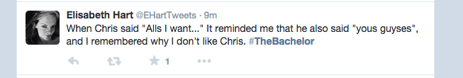This one-on-one had a twist. Chris’ three sisters stopped by the mansion to vet their possible sister-in-laws. They basically had one-on-one interviews with each of the girls who weren’t on the group date camping out by the lake. So pretty much a lose-lose all around. You either got to rough it at a watering hole, or get grilled by, not one, but THREE sister-in-laws. I don’t know about you, but those sound like a ton of fun. Turns out Jade made the best first impression. She let the sisters know she launched her own organic make-up company (free shameless plug!) and that she “modeled for clothing for awhile.” …and did playboy bunny. Did you forget to mention that part, Jade?