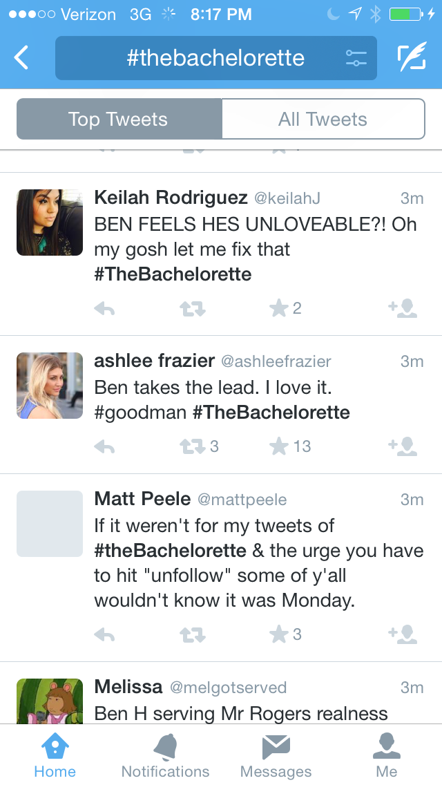 Ben H. told Kaitlyn he thought he was “unloveable,” because he was so heartbroken over his last long-term relationship. The Twitter world blew up with professions of “I’ll love you, Ben!” and “That’s crazy talk!” Safe to say, Ben H. is a strong contender for next season’s Bachelor hunk.
