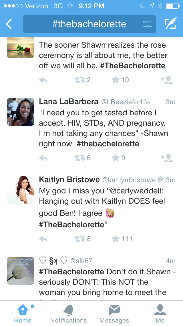 Ben H. had the one-on-one. They went on a row boat. Kaitlyn told him all of her stresses, and Ben calmed her. Kaitlyn suspected he was a virgin because he’s so nice. For the record those things are related. If you’re nice you’re obviously a virgin. (Please sense the sarcasm.) And the spotlight on Kaitlyn’s love life remained.