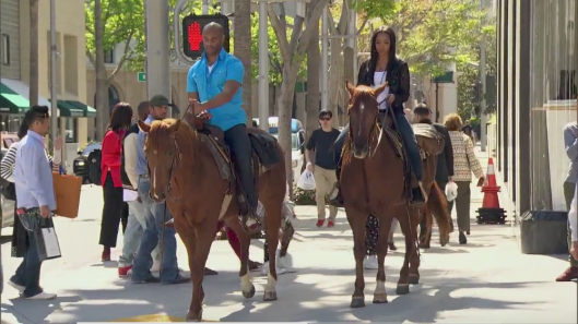 Is this a thing? Can I do this? Rachel took Anthony down Rodeo Drive in Beverly Hills on horseback to go shopping. Rachel looks like she is having zero fun in this picture, but I can assure you, she is having the time of her life. How could you not? You’re walking down the sidewalk of Beverly Hills on a horse and shopping! This is my everything. Rachel said she could take Anthony home to Texas right now.