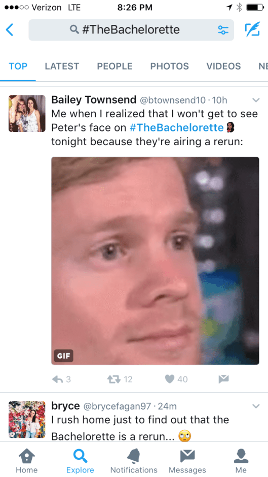 Tweets of the Night in Lieu of a New Bachelorette that sum up all of our feelings: