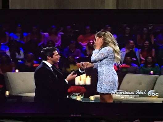 Then Chris Harrison brought out Arie and Lauren. Lauren announced she was moving to Arizona to be with him. And Arie in true Arie fashion proposed to Lauren publicly on stage with Becca in the wings and his and Lauren’s parents there at After the Final Rose. Lauren said yes. So there’s that.