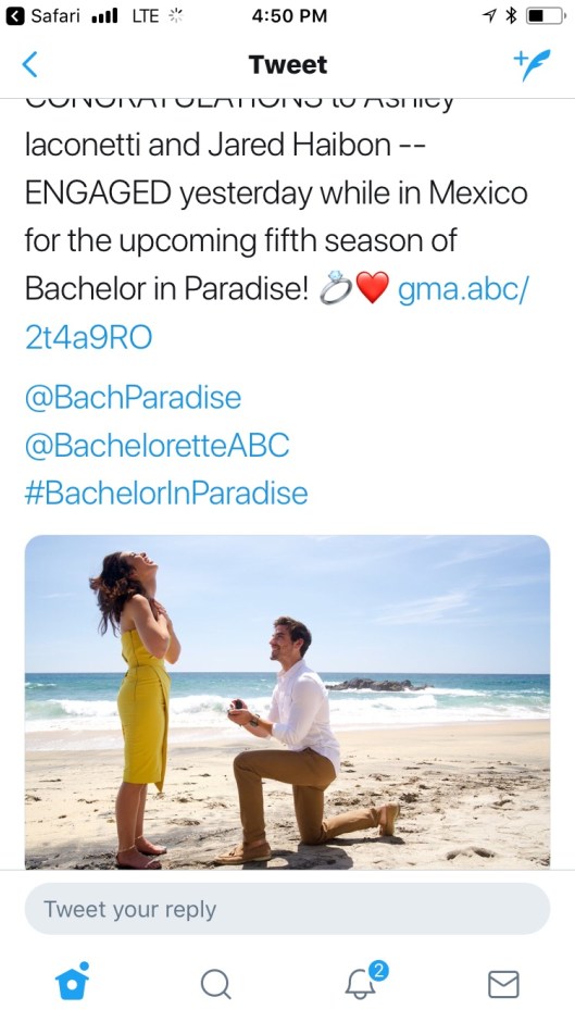 According to Good Morning America, Jared popped the question on Bachelor in Paradise, where there love story always seemed to end up. They were friends for 3 years, until finally Jared realized Ashley I. was the one. Congrats to the happy couple!