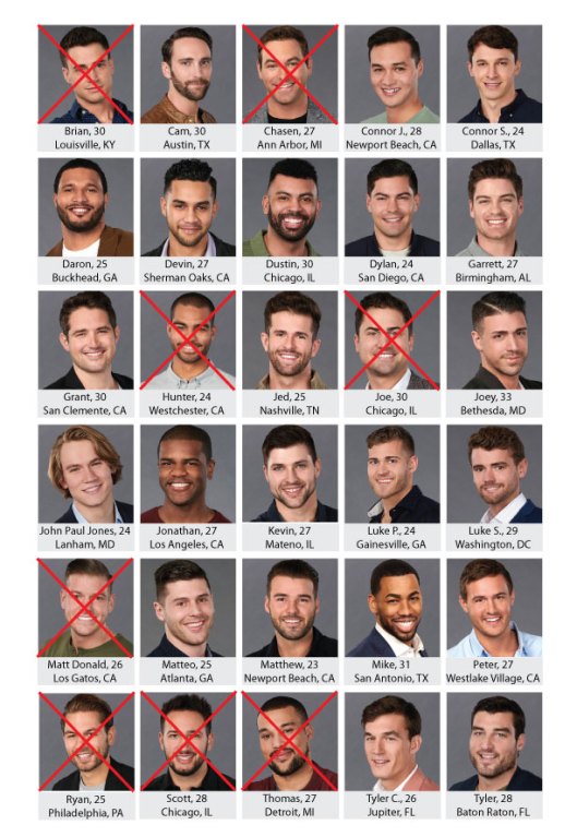 * I effed up. I X’d out Devin when clearly he is sticking around. Devin, Kevin, Kevin, Devin. Updated the Bachelor Board. Hopefully, it didn’t mess with your Bachelor Brackets.