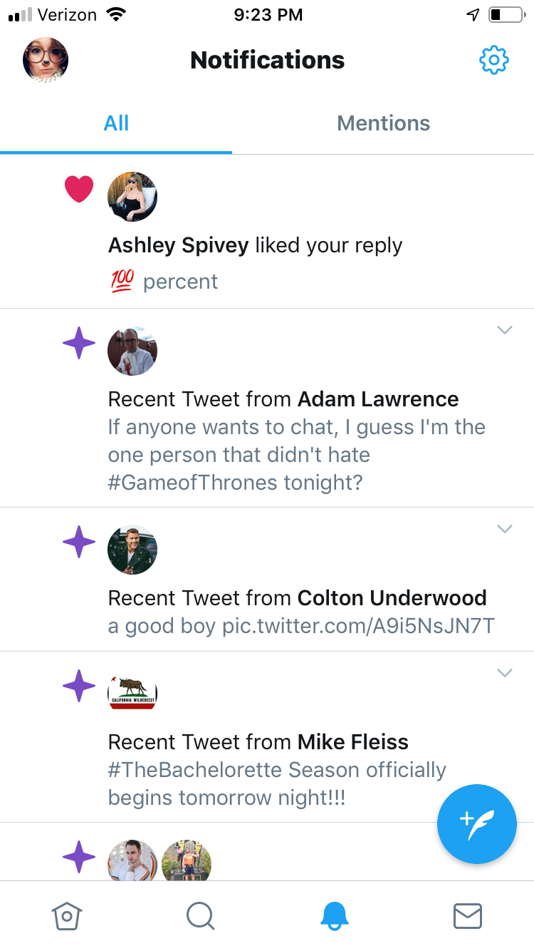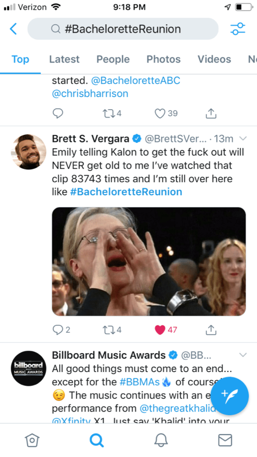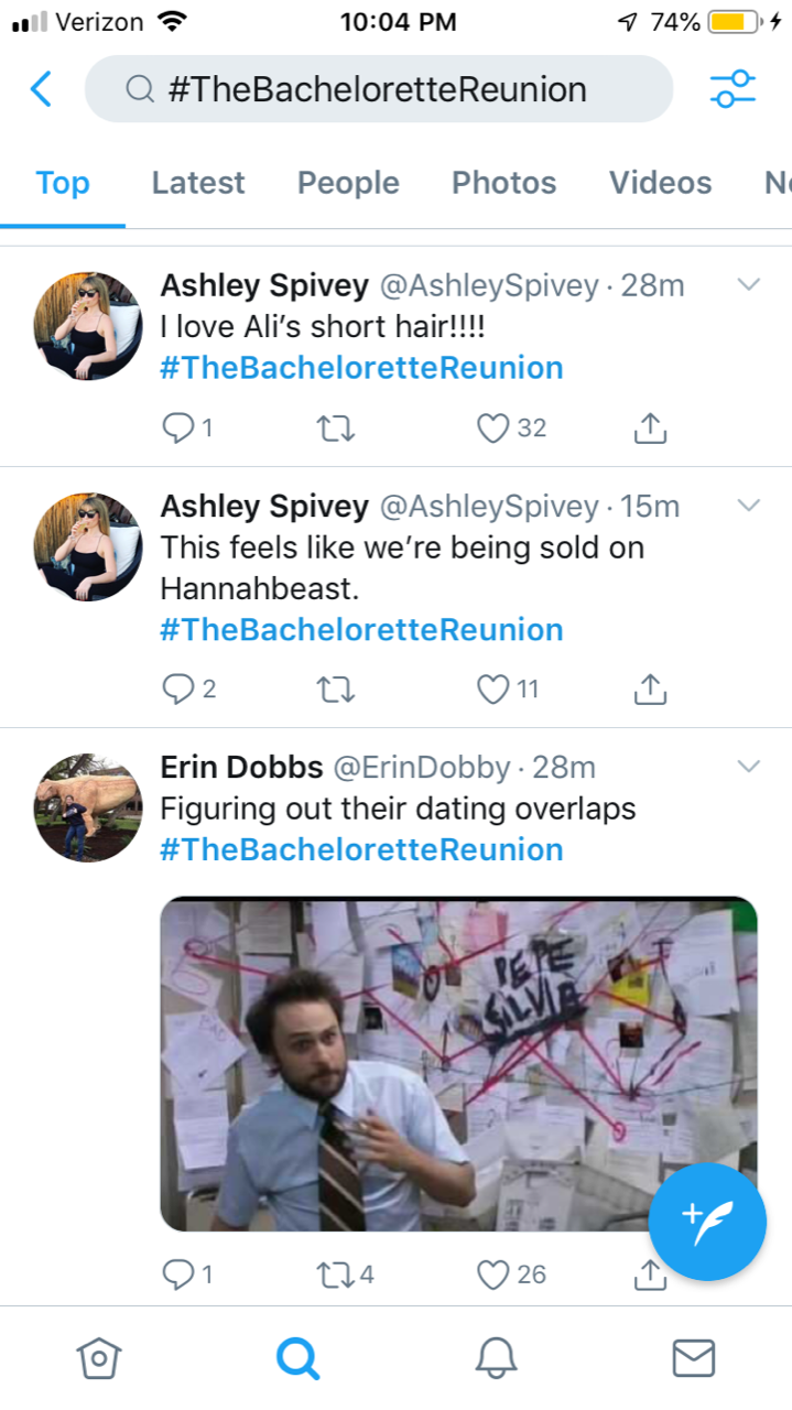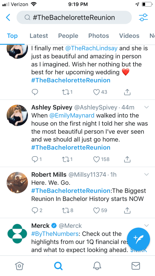 Exciting Moment of the Night: Ashley Spivey, the whistleblower, and I became best friends as evidenced by her liking a Tweet I sent with her agreeing on her observations of Emily Maynard’s beauty. I have peaked.