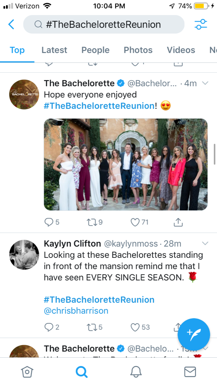 A Bachelor Bus filled with superfans, a Bridal Shower, a Bachelorette reunion party and a sneak peek at Hannah B’s hometown. The Bachelorette Reunion episode brought back almost all of the Bachelorettes from the 14 Seasons of the show.