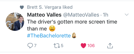 Tyler Gwozdz mysteriously disappeared midway through the episode. I thought I had missed something, but no, it was just one sentence by Hannah B. that we were given, notifying us of his departure. Hannah B. said Tyler G. just had to leave. That was it. No explanation was given, but Reality Steve said there were rumors about his previous relationships that you can find if you search for it. Apparently, the allegations were enough to warrant the producers and lawyers of the show to promptly remove him from the running. Refinery 29 and US Weekly cite Reality Steve and a Reddit thread saying Tyler G. spit on an ex-girlfriend and was a misogynist. ABC has yet to comment.