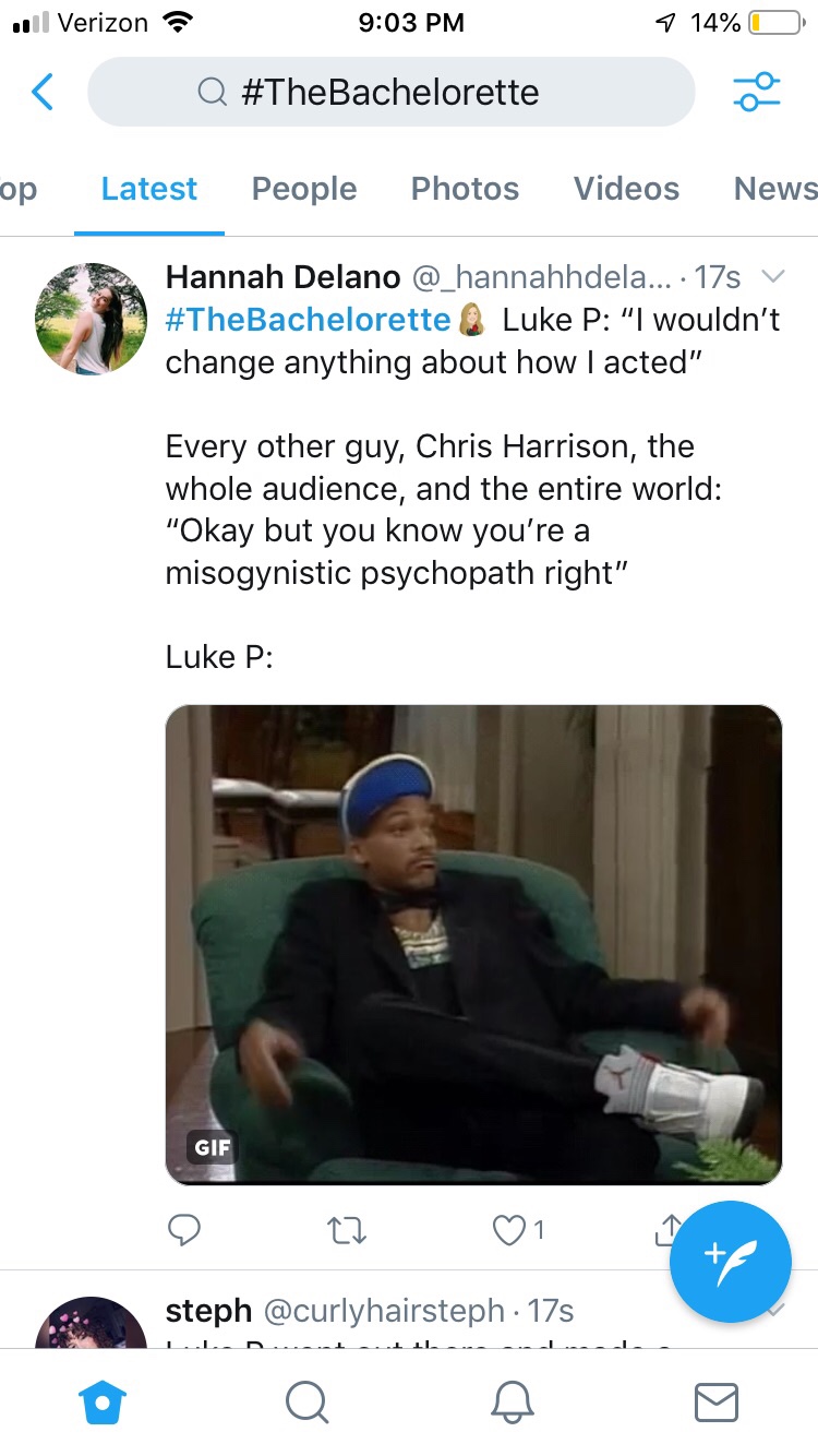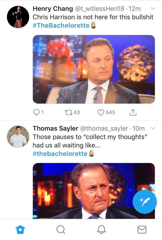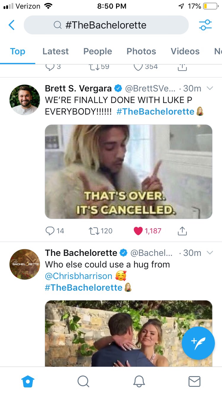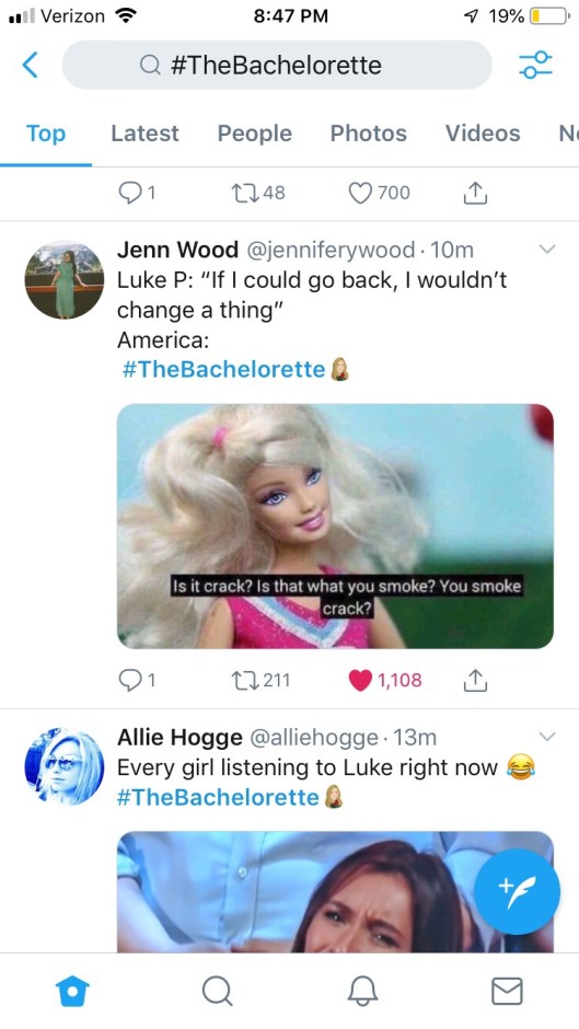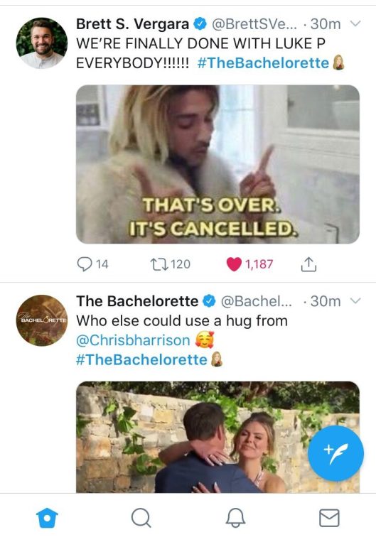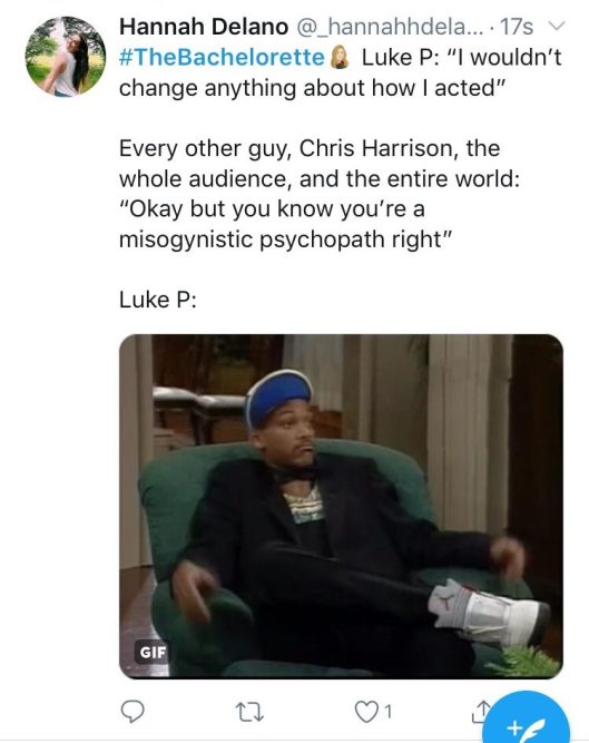 Devin came out heated, but keeping it together, because he had things to say. And it was this: that Luke P. only wanted to control a female in his relationships. Right on the money. Luke P. is a prime example of a toxic, abusive relationship. I usually like to keep things light and don’t normally like to get too deep, but Luke P.’s actions are just infuriating and NOT an okay example of a relationship. Also, I don’t think ABC needed all of that Luke P. drama to hold the show. I would have been happy seeing more of the camaraderie between the other guys on the show, because it looks like they had a great time. And I think Hannah B. would have had a greater, happier time finding love. But that’s just me.