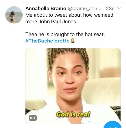 JPJ John Paul Jones got a ticket in the hot seat. He was greeted by his signature chicken nuggets and a member of the studio audience (guessing a plant) asked to cut a lock of his hair (a reference to earlier in the season when JPJ let Hannah B. cut a lock of his hair). It was weird. JPJ will grace us with his presence in Bachelor in Paradise. So don’t cry for him just yet. JPJ told Hannah that there were no hard feelings and that he would have let himself go. Cute.