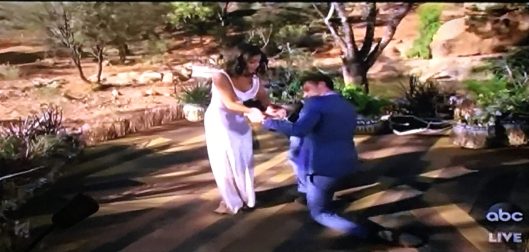 The Proposal: Peter proposed to Hannah Ann, his first impression rose lady, after asking her dad permission to marry her. Hannah Ann wore a white dress and Peter told her, “From my first impression rose to my last, will you accept this rose?” He also slipped in Madison’s name and I thought at first he mixed up the names, but it was just to tell her that Madison had left and she was it. Lordy.