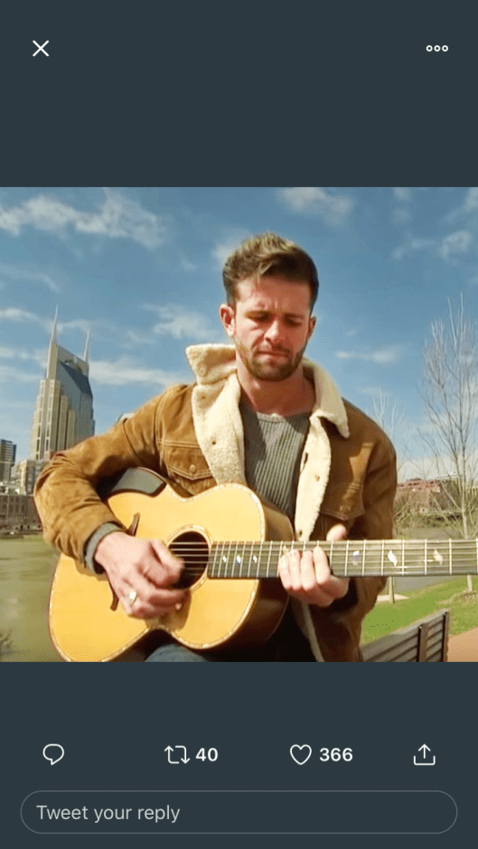 Meanwhile, Sheridan is being cute and playing guitar by his lonesome on the outdoor patio porch.