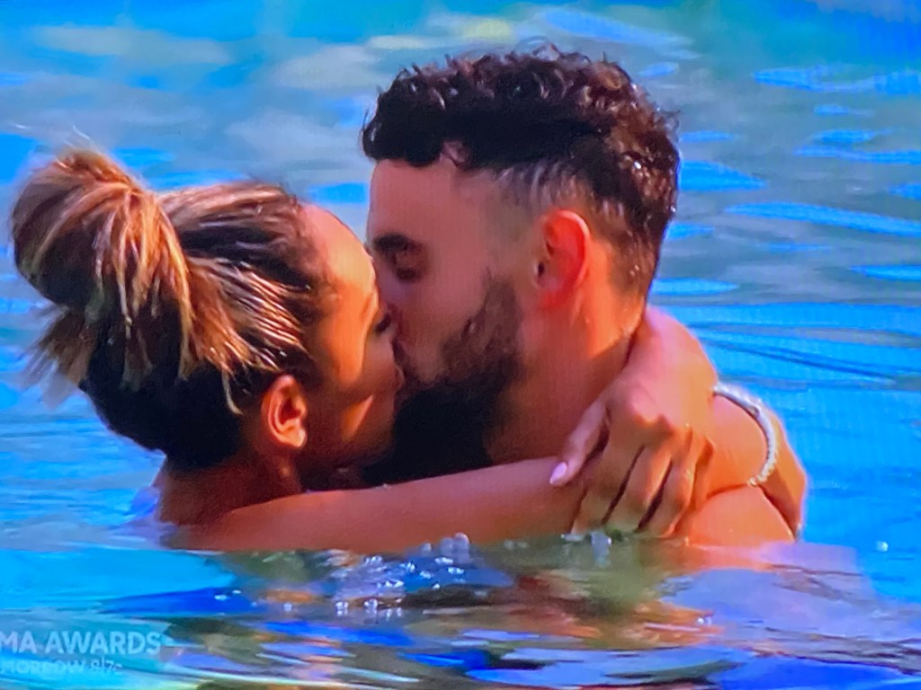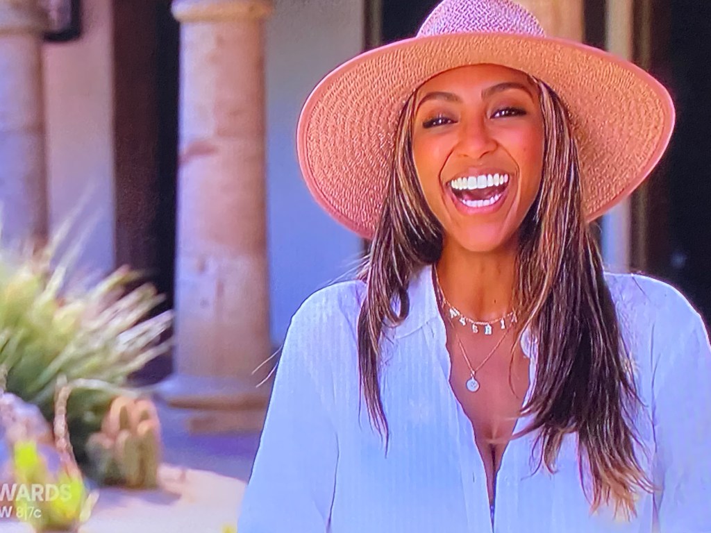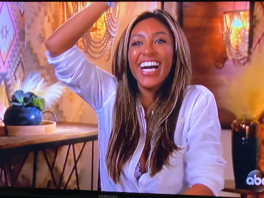 Tayshia arose from the fine La Quinta Inn’s pool like a greek goddess looking so pretty. The men played some form of water polo-basketball. There were hoops, they wore speedos, and they played basketball in the pool. Tayshia and Chris Harrison were the referees/commentators. And it was great. The Blue team beat the Green team earning them more time with Tayshia. And then both teams got more time with Tayshia at an after party. Tayshia’s so sweet. She told the Green team that she had them.