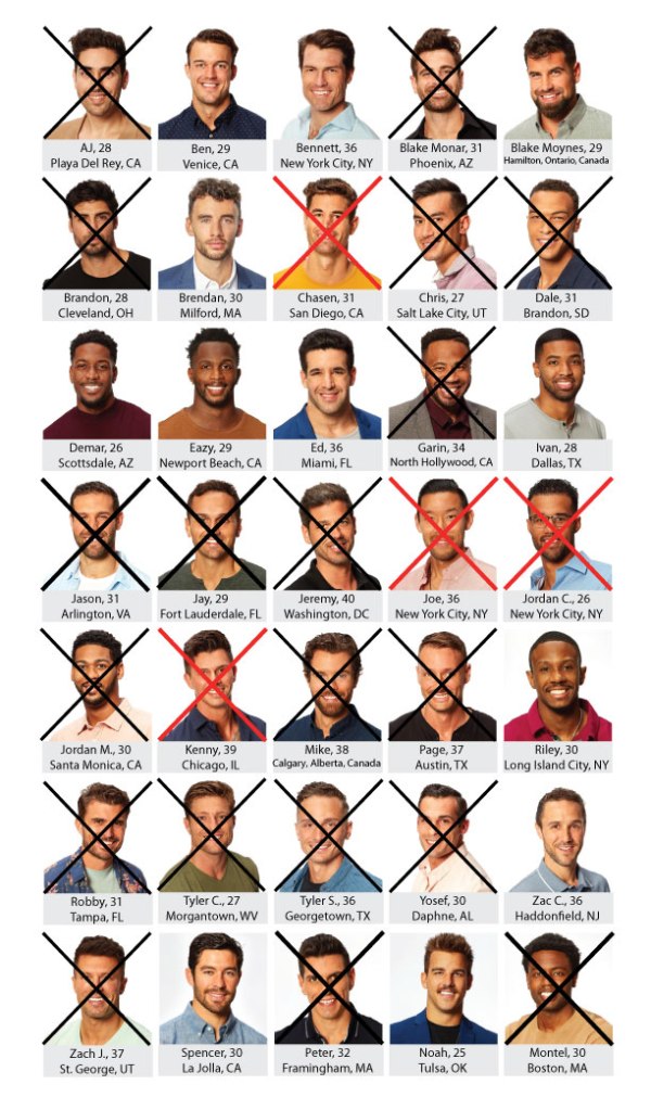 Who got kicked off: Chasen, Boy Band Manager Kenny, Jordan, and Joe the anesthesiologist. Oh, Joe, your time was so short and sweet.