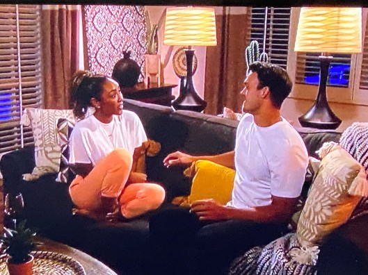 Second Quote of the Night: Ivan told Tayshia, “We’re both biracial, have black dads, and we have this beautiful love story that we’re developing.” It was hard and sweet.