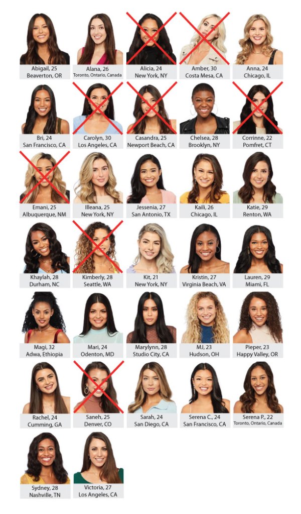 Who got kicked off: Alicia, Amber, Carolyn, Casandra, Corinne, Emani, Kimberly and Saneh went home night one. It was daylight out when they left. Eek.