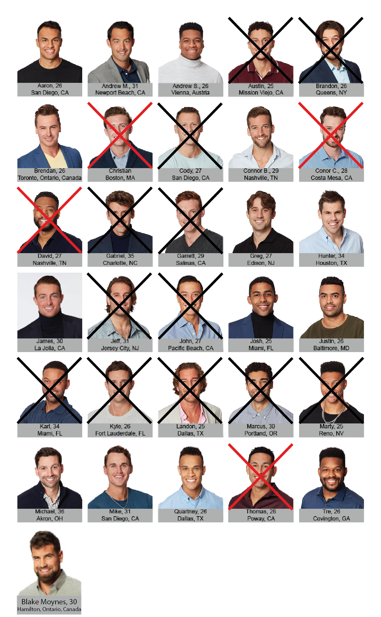 Who got kicked off: Boston Christian, Conor C., David, and Thomas were sent home at the rose ceremony. Blake Moynes was given the final rose of the ceremony and he’ll be joining the group of men next week!