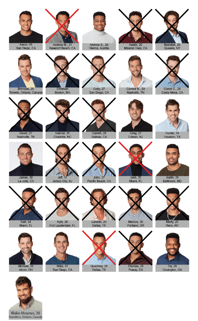 Blake Moynes, the new Canadian, got the first one-on-one date and a rose to everyone’s dismay. He asked a very pointed question to Katie about why she was so sex positive, which makes me think he did his research like he did for Claire. Or maybe I just don’t trust Blake who has been dating three Bachelorettes in a small number of months. Hunter got a rose on the group date hosted by Wells Adams and Franco the photographer. Andrew S. got his first one-on-one date and a rose.