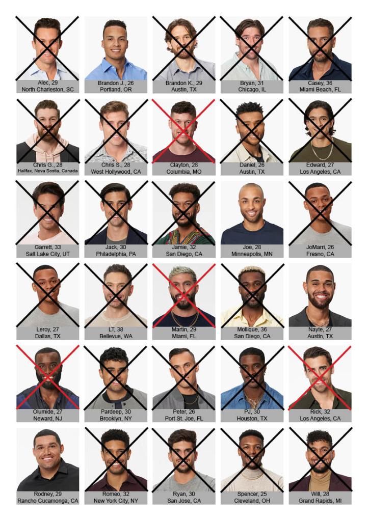 Who got kicked off: Clayton went home on the one-on-one date. Martin went home on the group date. Olu and Rick went home at the rose ceremony.