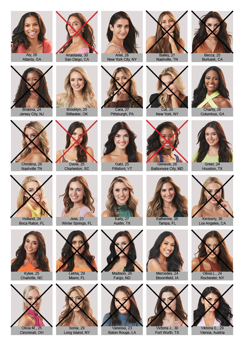 Who got kicked off: Anastasia was sent home at the cocktail hour before the rose ceremony. Davia and Genevie were sent home.