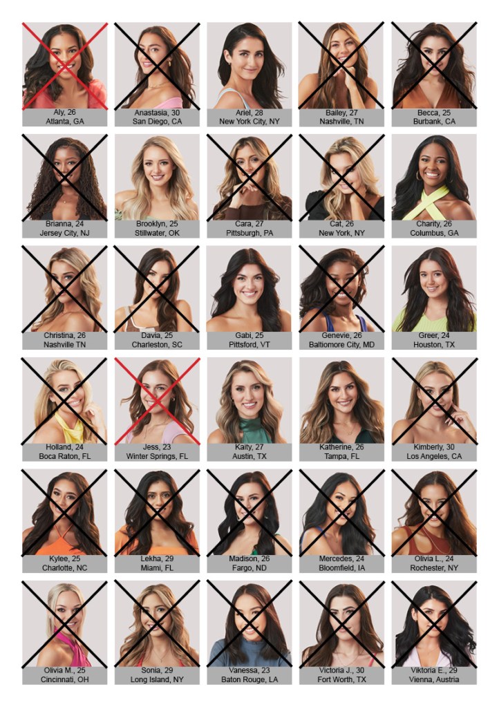 Who got kicked off: Jess was sent home on the group date because she was stressed. Aly was sent home at the rose ceremony.