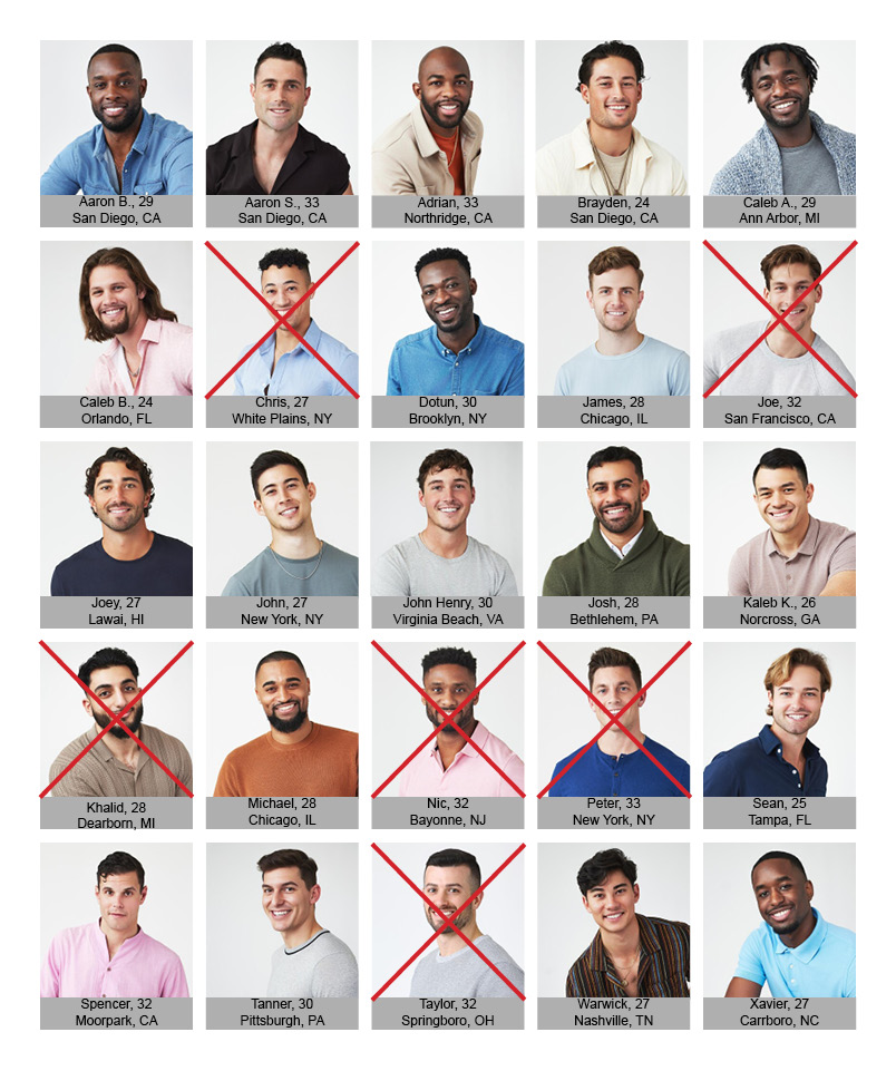 Who got kicked off: Chris, Joe, Khalid, Nic, Peter and Taylor were sent home night one.